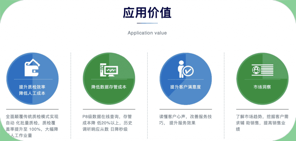 浩杭智能质检系统是以语音识别,语义分析,大数据处理技术为基础,面向联络中心提供数据转换,存储,质检,分析等功能服务,通过灵活可配的质检模型和质检作业引擎实现自动化批量检测,识别出风险信息,将质检覆盖提升到100%,降低运营风险和人力成本。